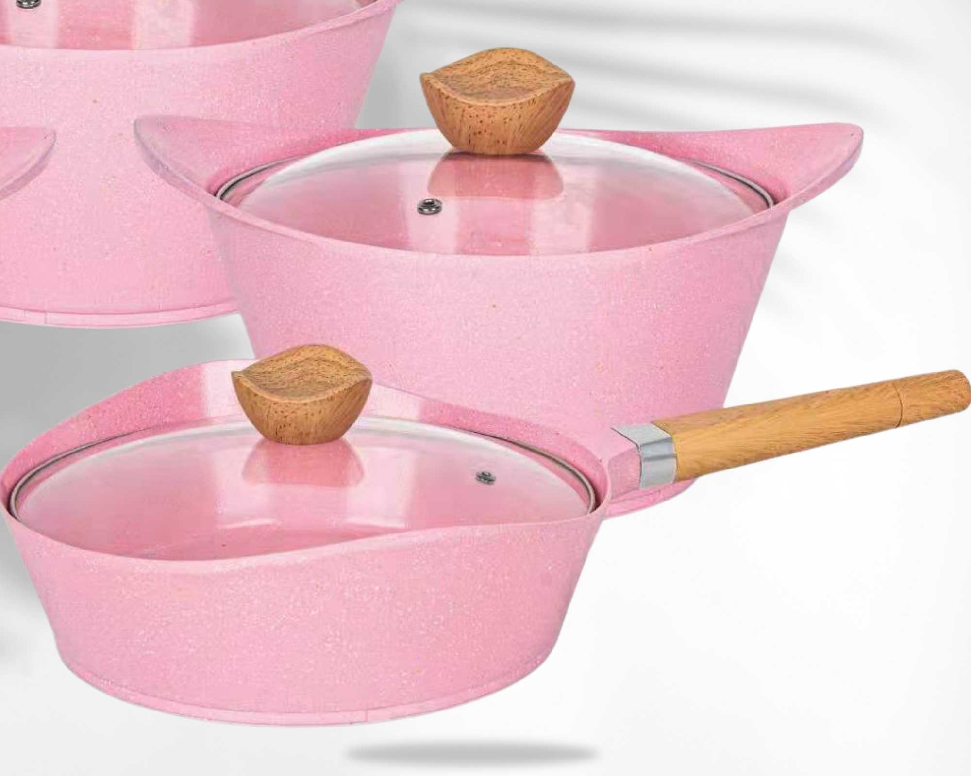 Set Batteries de cuisines rose – Revêtement antiadhésif – 10 pièces – Marque: METTMANN PROFESSIONNEL