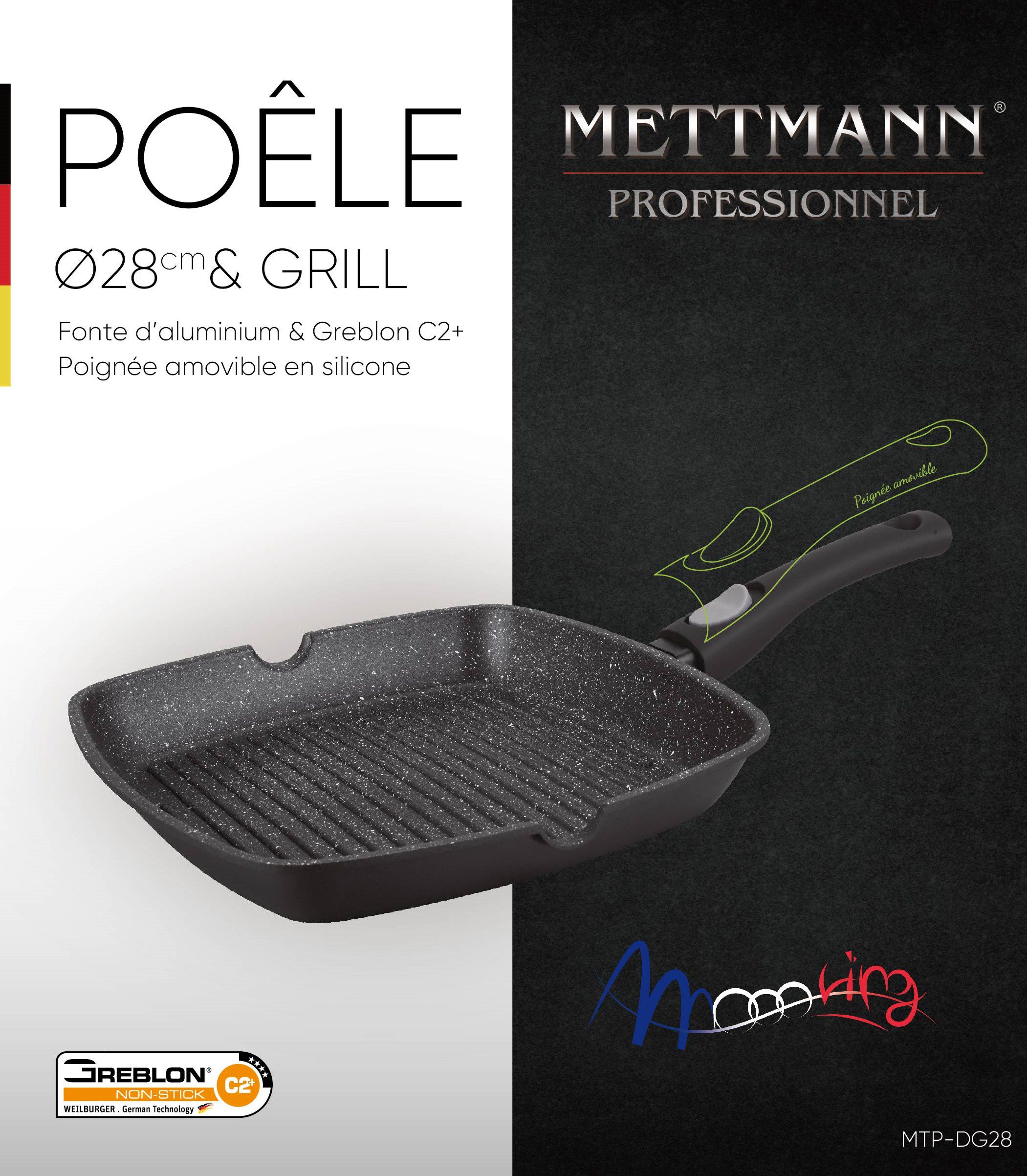 Poêle Grille 28cm – Revêtement antiadhésif Greblon C2 – Induction – Marque: METTMANN PROFESSIONNEL