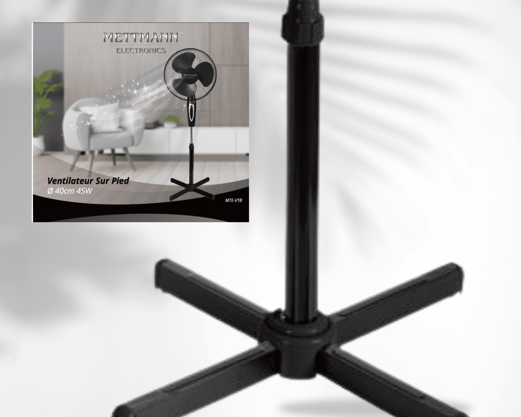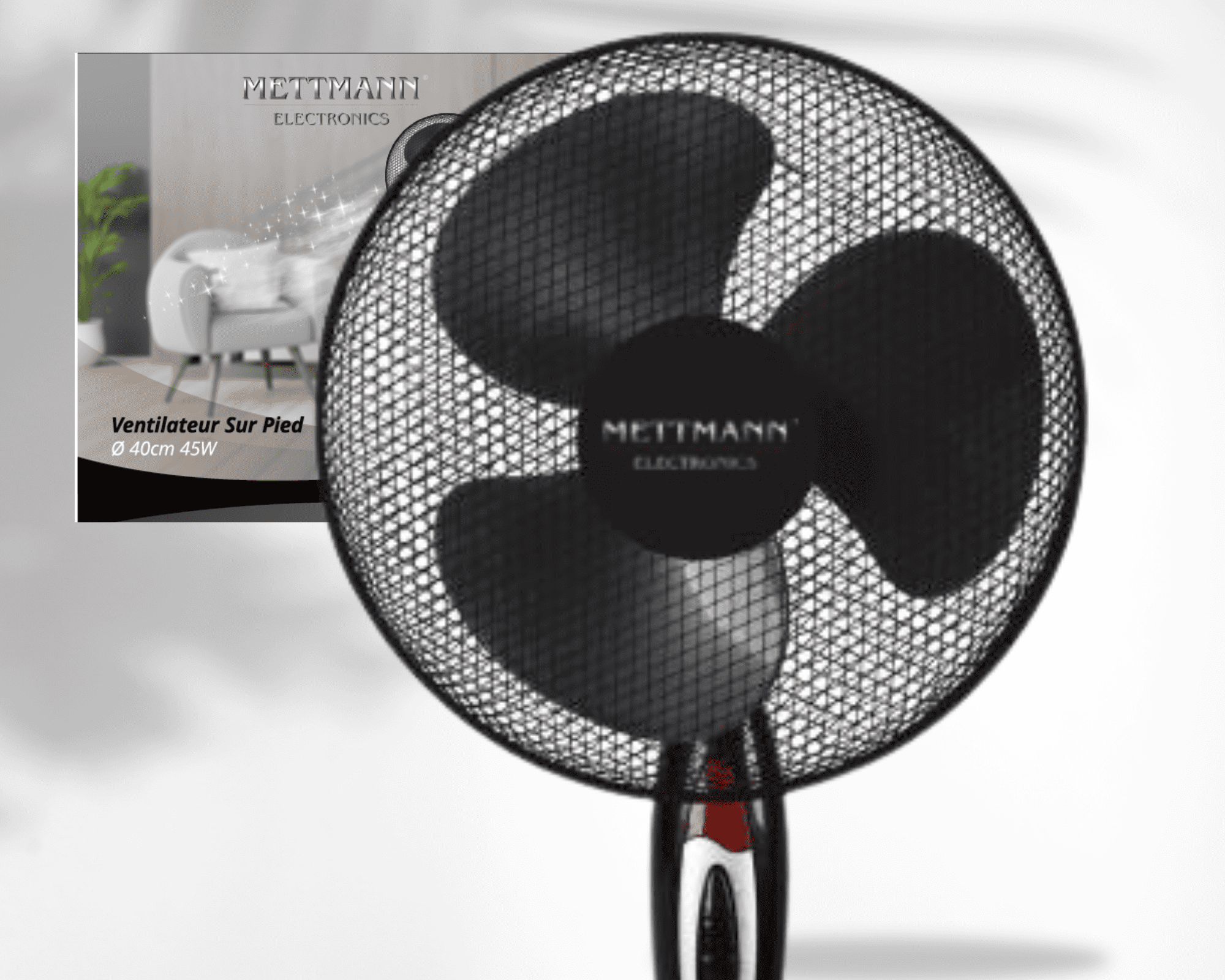 Ventilateur sur pieds 40cm – 45W Noir – Marque – METTMANN ELECTRONICS